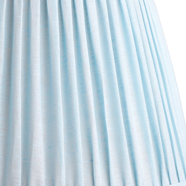 A soft powder-blue pleated lampshade with sweet ruffled edges, the Bloomer brings a touch of cottage charm and a gentle, flattering glow to any space.