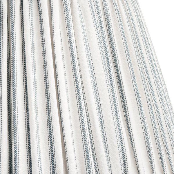 The Blue Ticking lampshade pairs classic pleats with charming ruffled edges, its subtle striped fabric bringing a timeless, country-house elegance to your light.