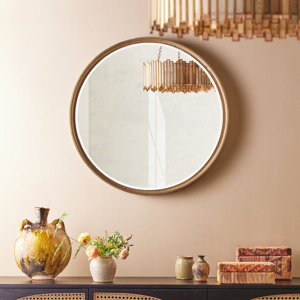 Our Feathers mirror is simple but majestic. The frame is made from a solid piece of cast aluminium (or aloominum if you're from across the pond) - and the beauty of this is that rather than a perfect, smooth and frankly a bit boring frame, you get little quirks and imperfections, that give the whole thing class and character. The mirror itself is round and bevelled - we bevel all our mirrors....it makes the difference. If mirrors could rule the world...