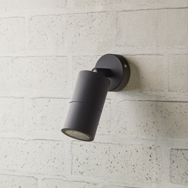 This is a lovely cylindrical design which is simple, discreet and contemporary. This one is adjustable and can be directed to throw a gentle wash of light on the wall, on a pathway or maybe your favourite garden gnome! Bring it inside too, by all means! It can bring ambient light and a modern touch to your bathroom, or along a passageway. This version is powder coated aluminium, which is rated for outdoors, but we wouldn't recommend it for coastal or other harsh environments. These fittings are dimmable so long as used with a suitable dimmable bulb.