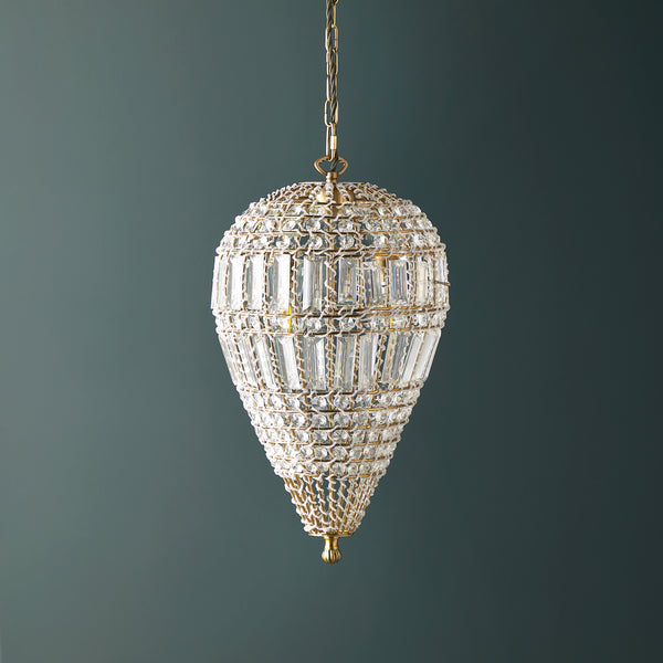Rather like a giant glass hot-air balloon, it will hang and sparkle majestically wherever you choose to place it. Literally hundreds of different pieces of glass with different cuts and shapes confer high marks for shimmering.
