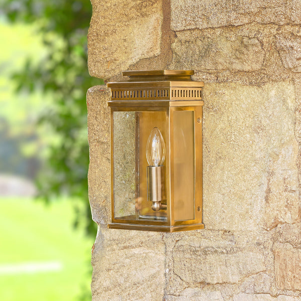 Now this is a very smart outdoor wall lantern, though we say it ourselves. Proportionately it just works - just the right amount of frill, but not too much. Made from solid, heavyweight brass, meaning that once installed, it'll happily stay there forever - rust proof and waterproof - understated hassle free style.